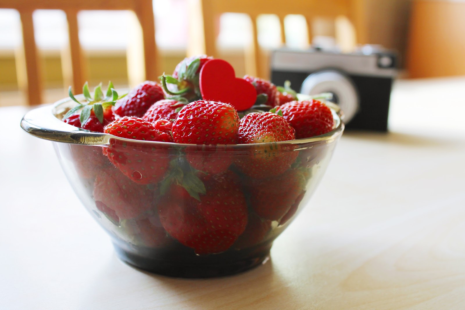 Temat owoce okazał się bardzo wdzięczny. Sezon truskawkowy w pełni, więc nazbierałam kilka truskawek i wycelowałam w nie obiektyw mojego aparatu. Jednak musiałam bronić ich jak lwica, bo zaraz okazało się, że jest paru chętnych smakoszy na moje truskawki. ;) Po sesji zdjęciowej truskawy wylądowały w cieście, a chwilę później w naszych brzuchach. ;)